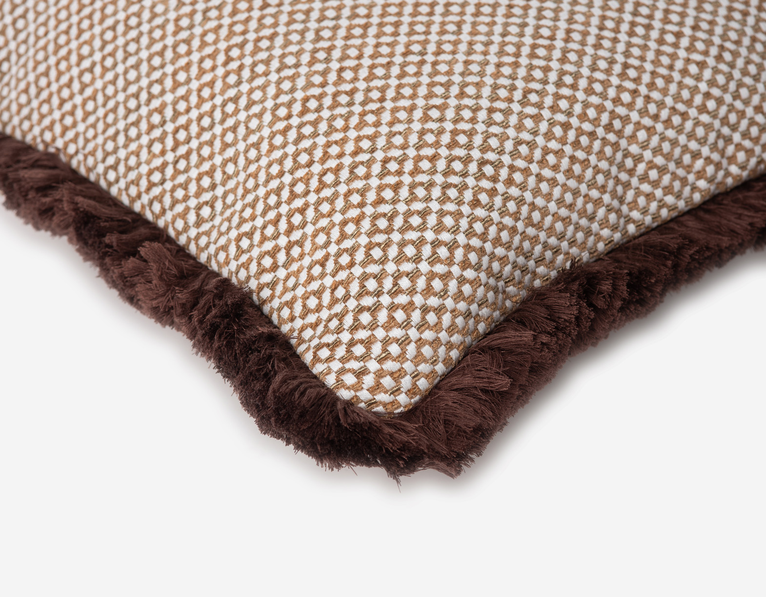 Cushion decorated with shiny thread, giving it bright colours. Finished with cotton and linen trimmings.