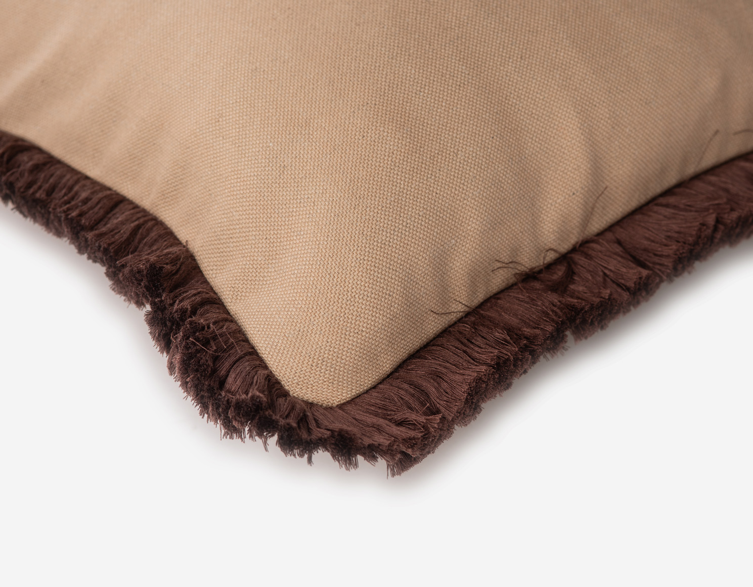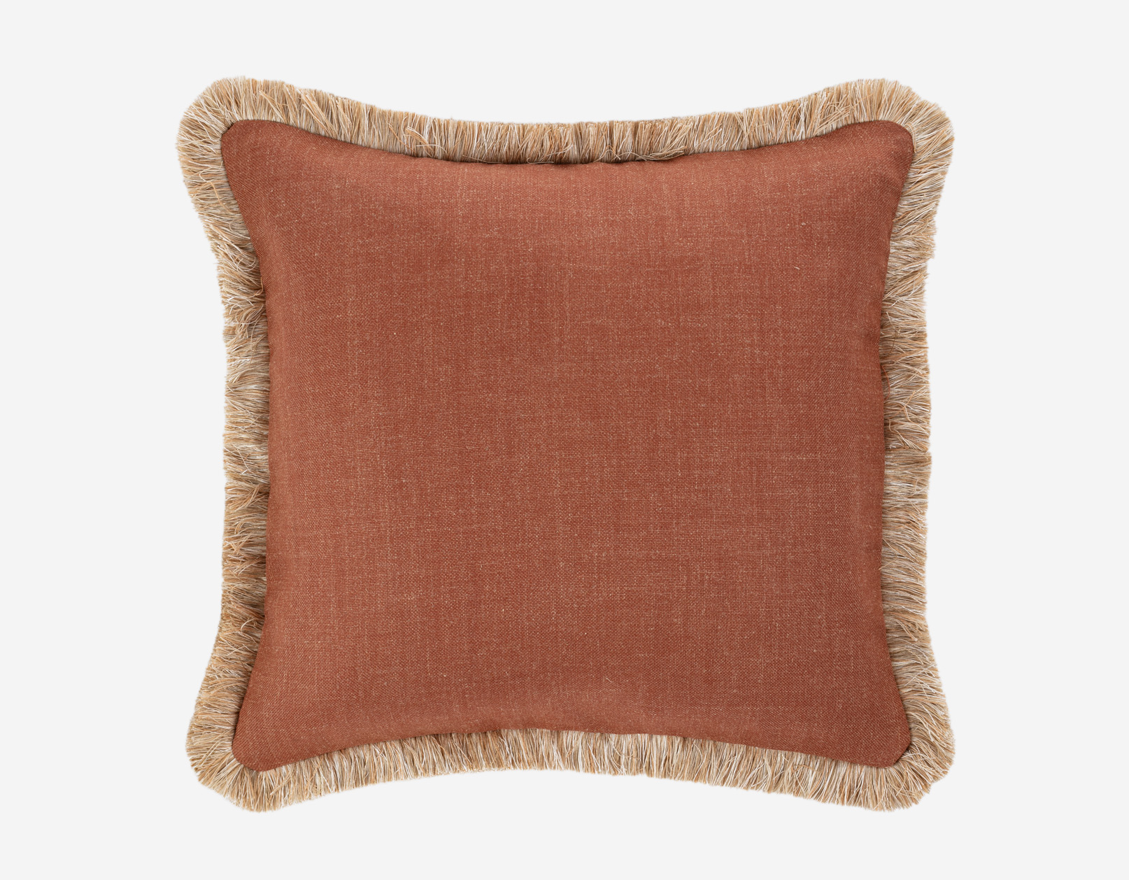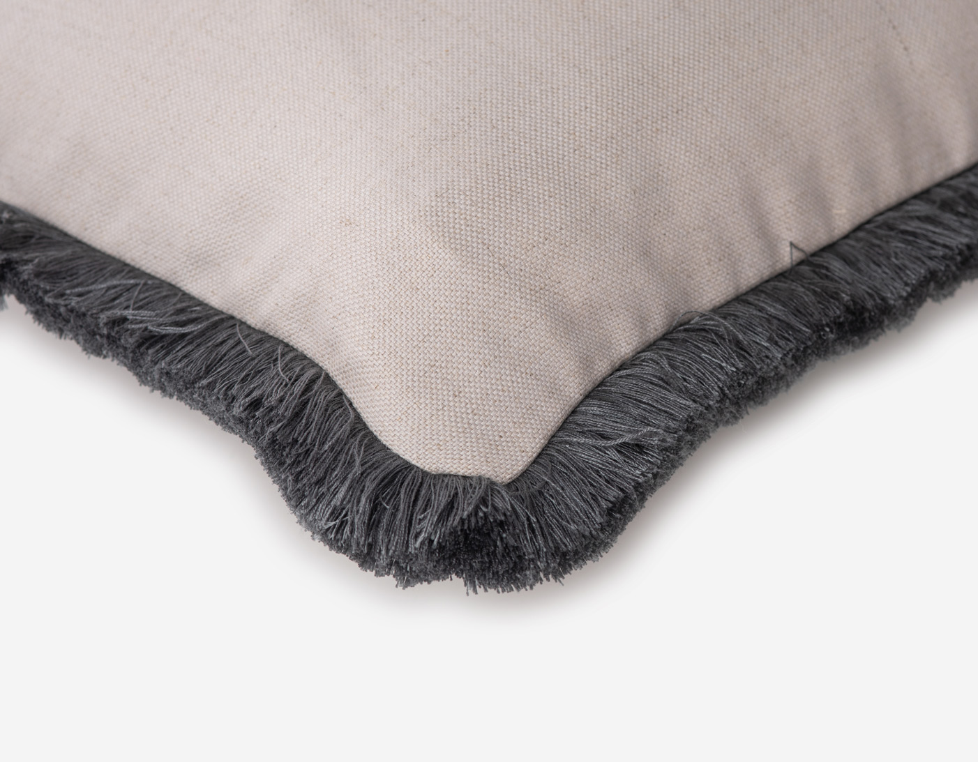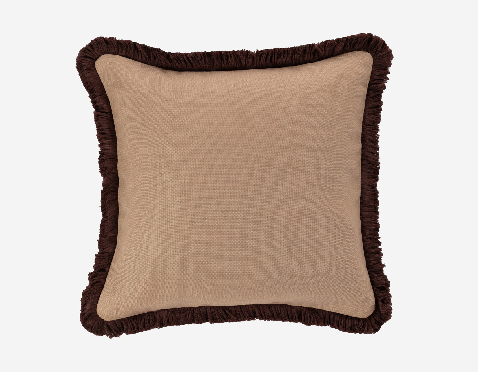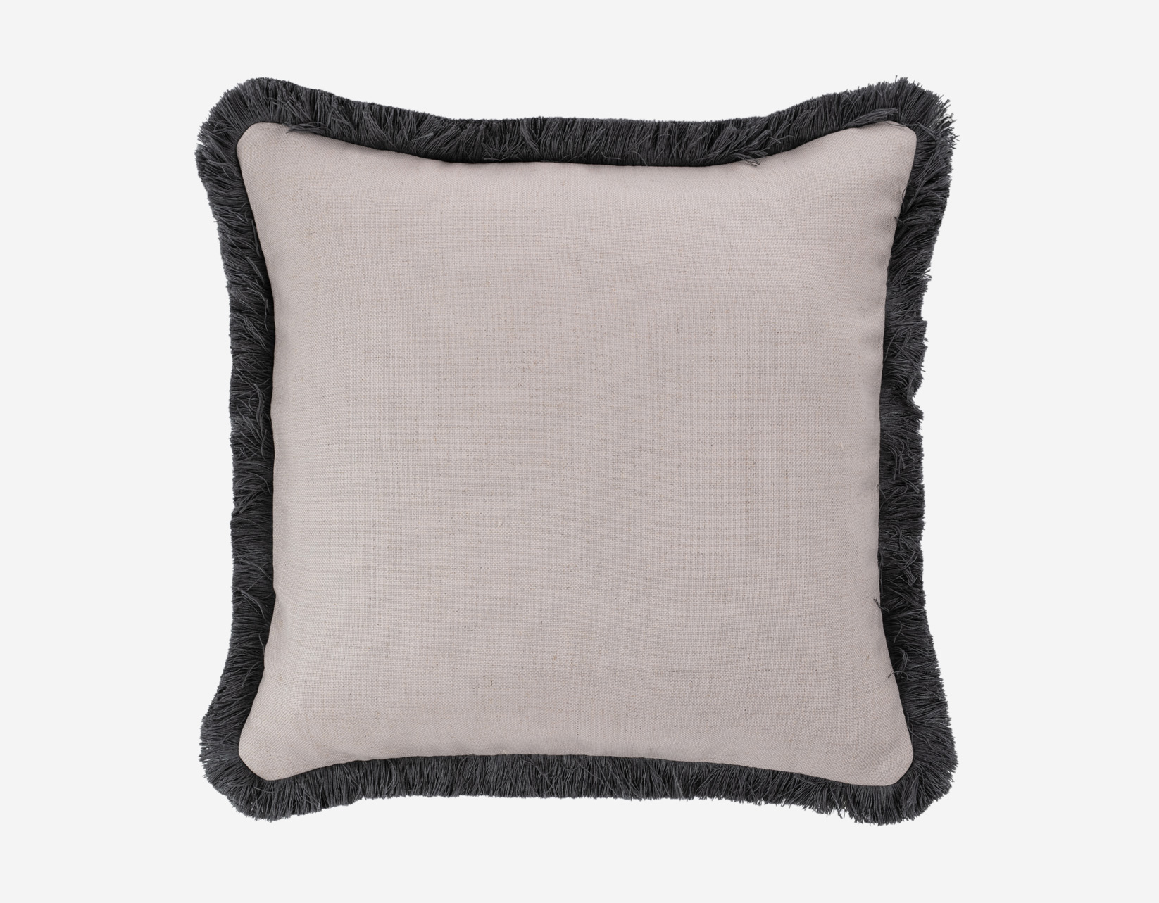 Cuscino unito elegante in lana e lino, contornato da spazzolino di passamaneria.